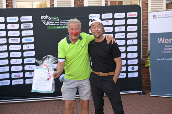 Mit großer Freude und Dankbarkeit blicken wir auf den 13. Münsteraner Eagles Krimi-Cup zurück, der am 31. August und 1. September 2025 stattfand. Der Einladung unseres Kuratoriumsmitglieds Werner Schulze-Erdel, unseres Schirmherrn Jan Josef Liefers sowie der Volksbank im Münsterland folgten erneut zahlreiche Gäste – darunter prominente Persönlichkeiten wie Wolfgang Kubicki, Anna Loos, Guido Cantz, Wolfgang Bosbach, Uli Stein u. v. m.
