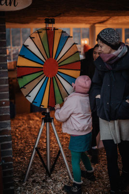 Einlass (Die Gäste können entspannt ankommen, sich umschauen, etwas essen und am Glücksrad vorbeigehen)