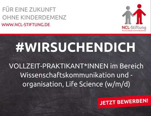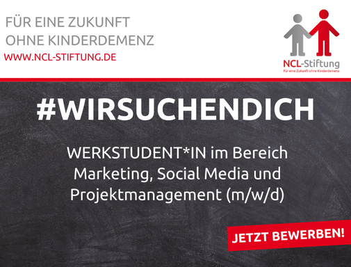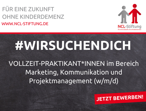 Wir freuen uns jederzeit über Initiativbewerbungen von engagierten Menschen, die unsere Mission unterstützen möchten. Wenn Sie eigene Ideen einbringen oder sich mit Ihren Fähigkeiten für die Erforschung und Bekämpfung der Kinderdemenz (NCL) einsetzen wollen, nehmen Sie gerne Kontakt mit uns auf!